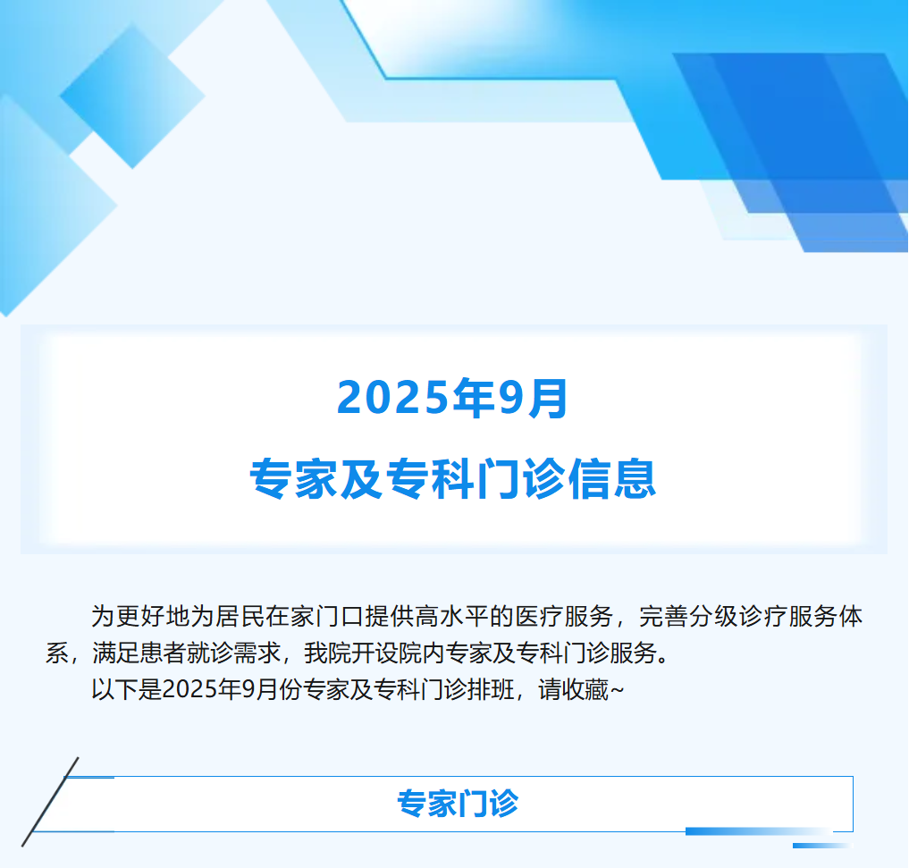 【看这里~】2025年9月专家及专科门诊排班来啦!