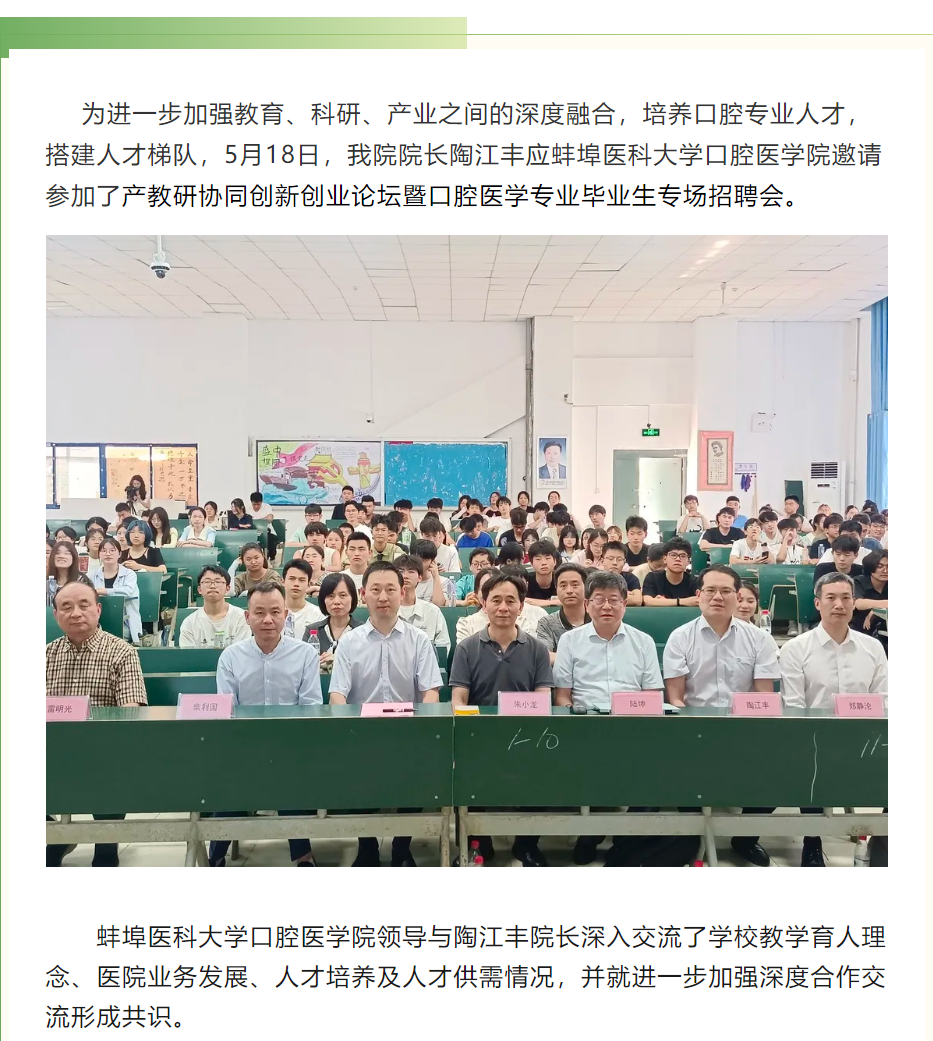 【青春腾达 筑梦未来】江阴口腔医院赴蚌埠医科大学口腔医学院参加招聘会