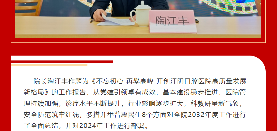 【乘风破浪,开拓未来】江阴口腔医院召开2023年度总结表彰大会暨2024年工作部署大会