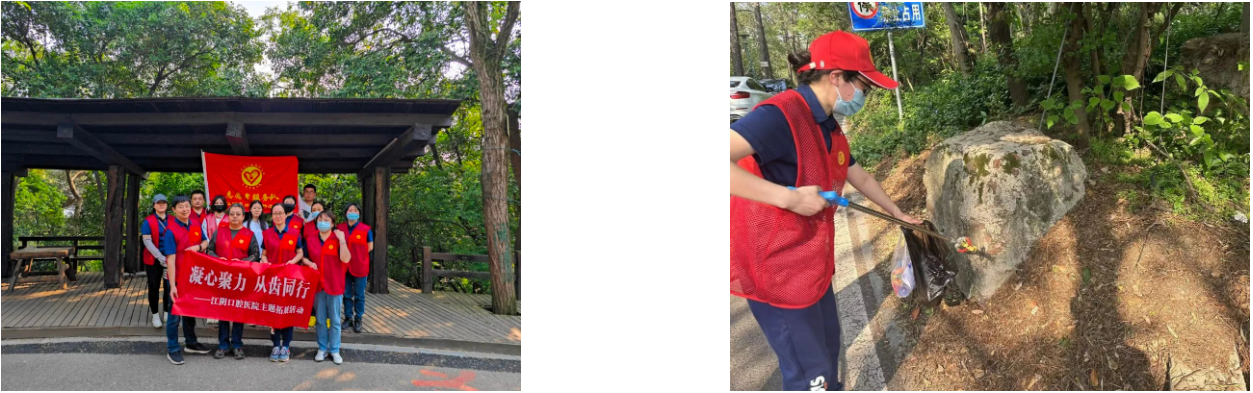 为全面贯彻党的二十大精神,深入学习落实习近平总书记在爱国卫生运动开展70周年之际的重要指示精神,积极开展爱国卫生月系列活动,参观完江阴1937海空大战展示馆后,我院青年志愿者积极参加环保公益志愿活动,沿下山路线清理道路两侧垃圾,倡导文明健康行为,打造卫生健康环境。