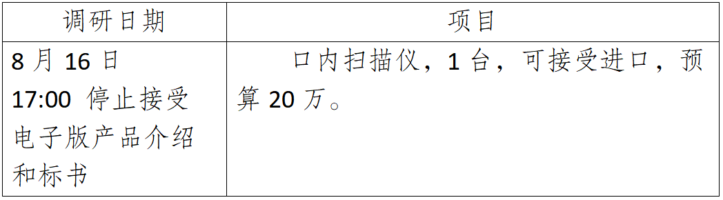 江阴口腔医院口内扫描仪设备调研公告