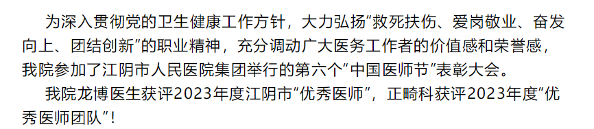 【表彰】我院荣获江阴市“优秀医师”及“优秀医师团队”