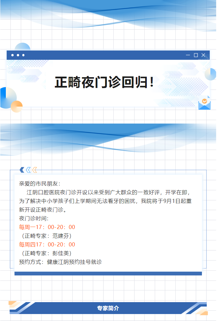 【资讯】江阴口腔医院正畸夜门诊回归啦!