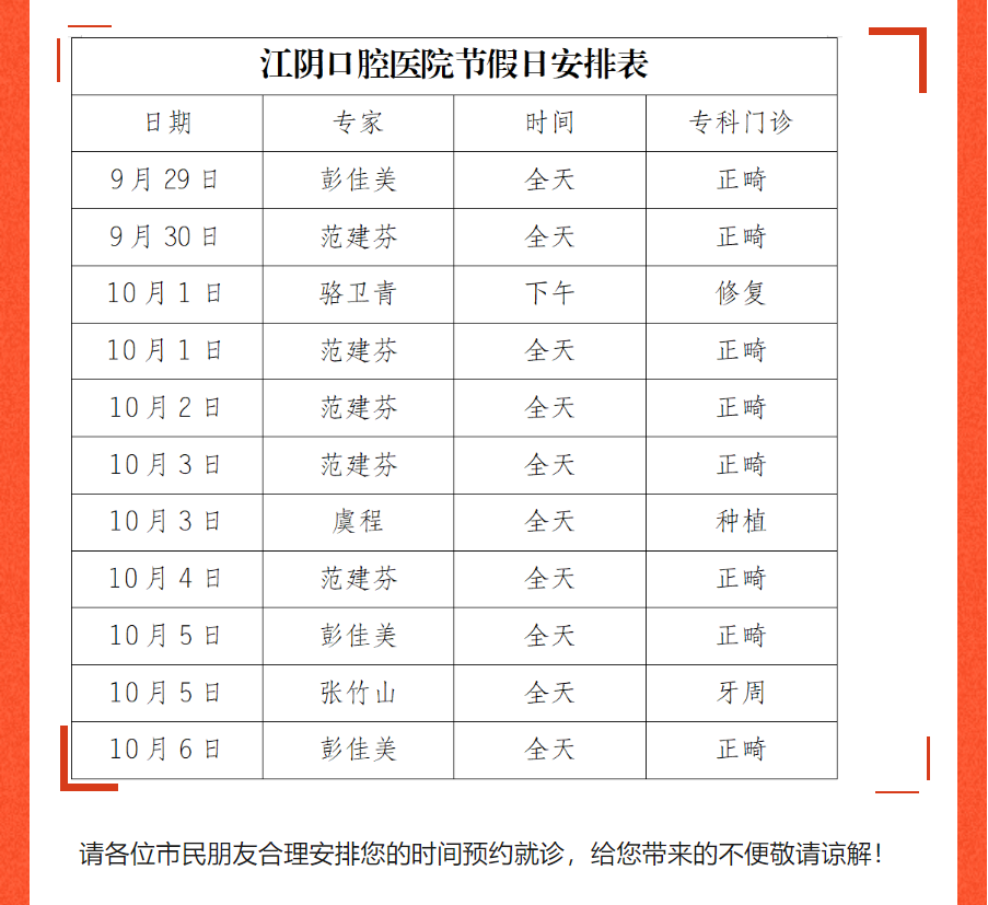 【通知】情满中秋月,家国共团圆——江阴口腔医院中秋国庆假期门诊安排