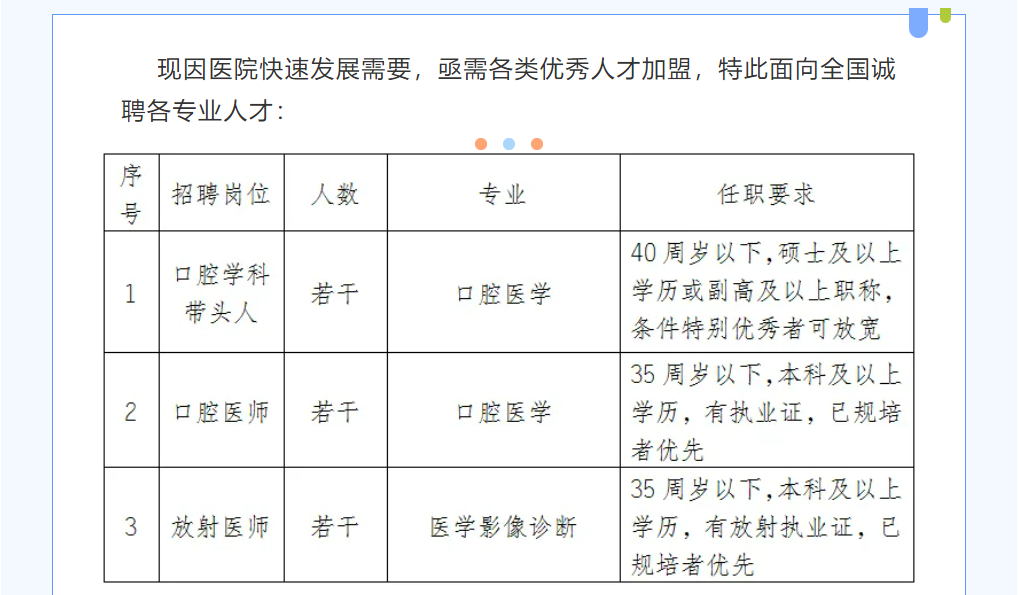 【招聘】江阴口腔医院招聘简章