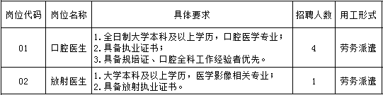 按照江阴市“十四五"规划和要求,江阴口腔医院将按照二级甲等口腔专科医院的建设要求,坚持"总体规划、分步实施、保障基础、着眼未来”的设计方向,创建具有高水准的、集医疗、护理、保健、预防、美容、科研、教学等为一体的大型现代化口腔医院。江阴口腔医院新址建筑面积近八千平方,规划椅位50张,床位15张,将建设成为江阴市口腔规范诊疗中心及口腔消毒供应中心,医院开设口腔种植科、正畸科、修复科、口腔颌面外科、牙体牙髓科、牙周科、儿童口腔科、口腔综合科、口腔预防科、VIP特需诊疗中心、医学检验科、医学影像科等特色专科。现因业务发展需要面向社会公开招聘医生共计5人,有关事项公告如下: