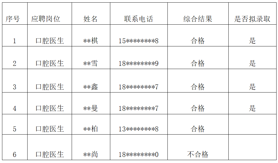 江阴口腔医院2023年招聘拟录取名单公示