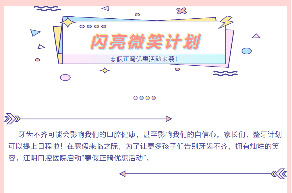 【闪亮微笑计划】江阴口腔医院寒假正畸优惠活动来啦!