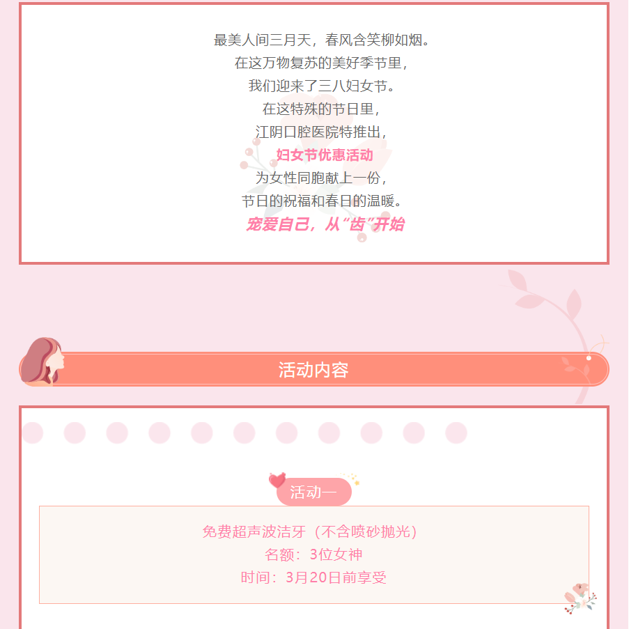 【女神节福利】江阴口腔医院女神节优惠活动,热辣来袭!