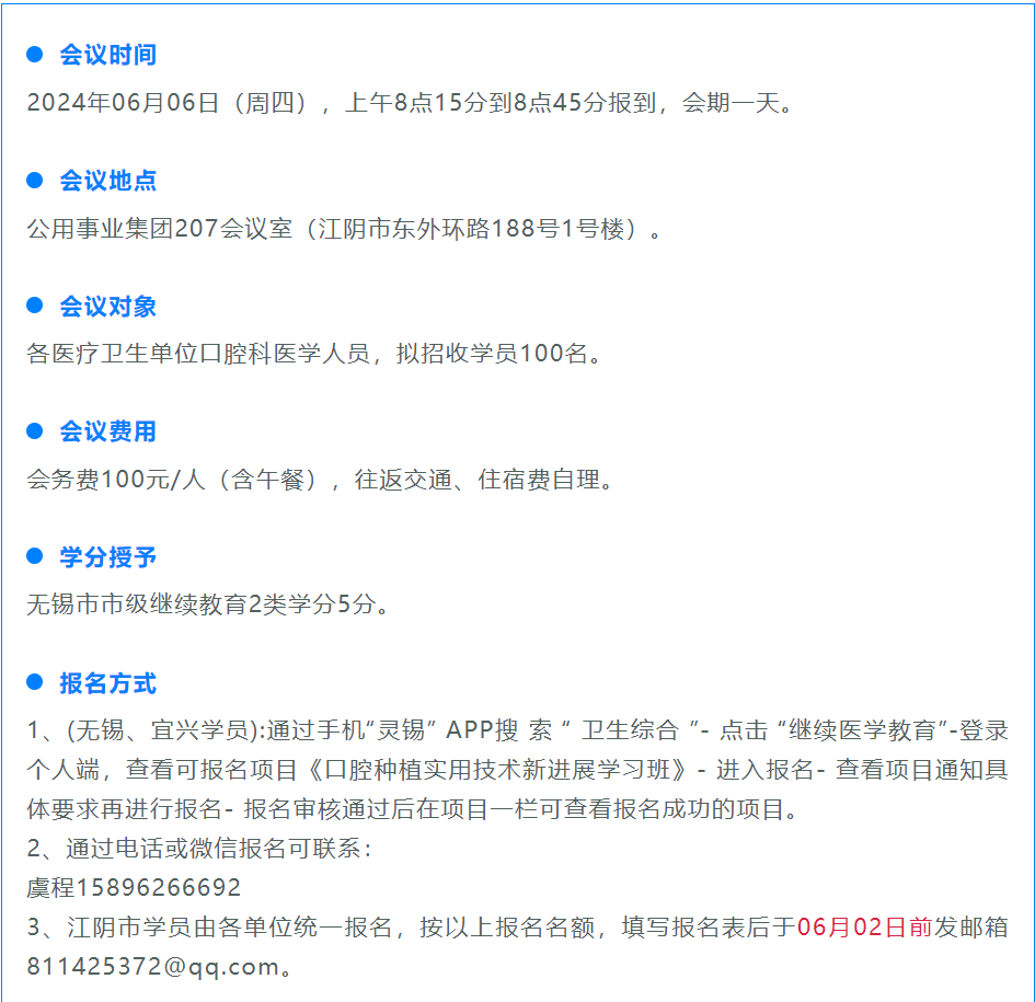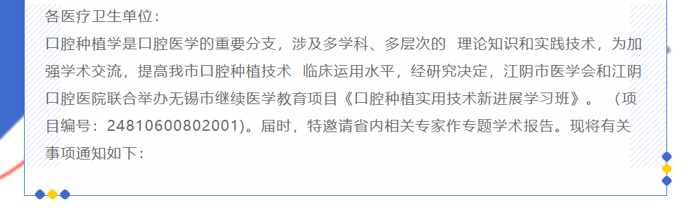 【继教通知】无锡市继续医学教育项目《口腔种植实用技术新进展学习班》会议通知