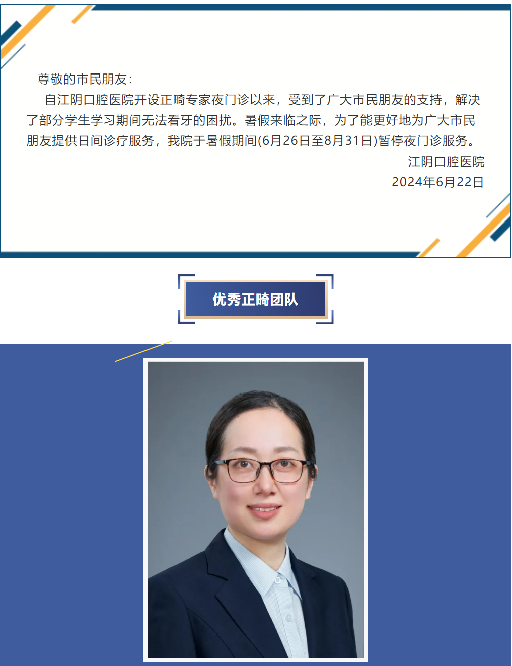 【通知】江阴口腔医院正畸专家夜门诊暂停