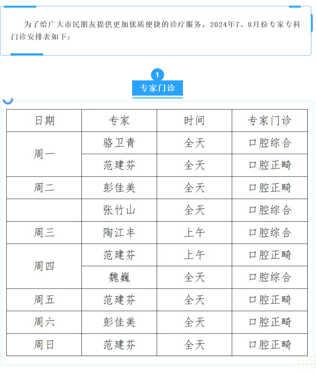 【通知】江阴口腔医院7、8月份专家专科门诊安排表看这里!