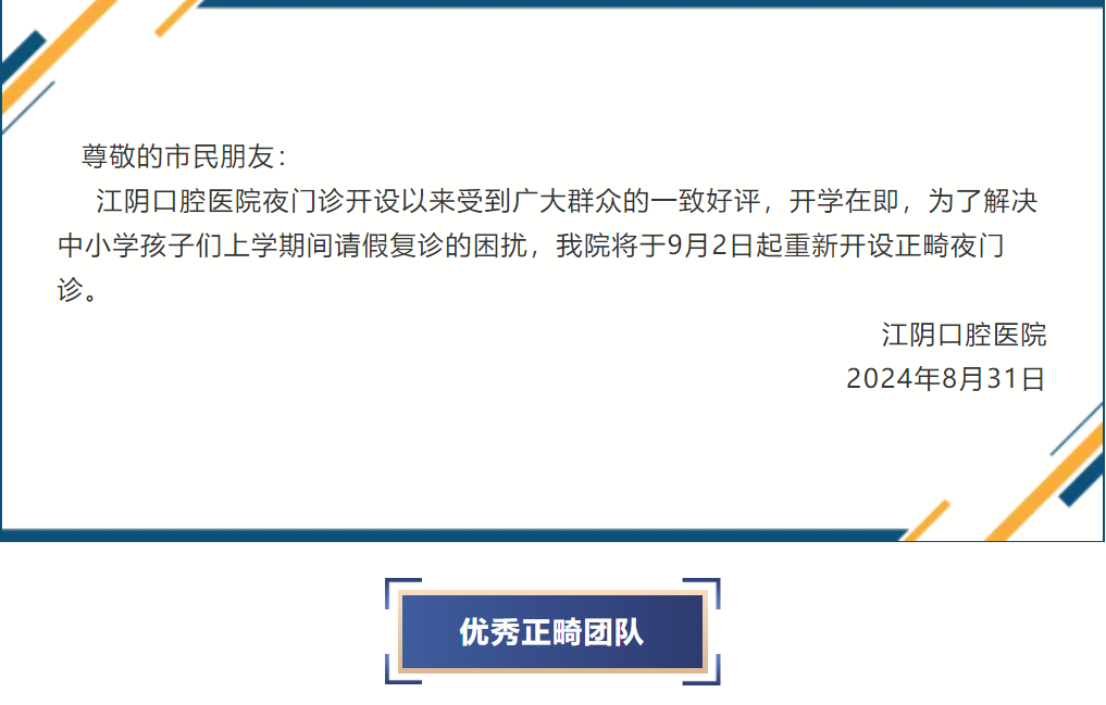 【资讯】江阴口腔医院正畸夜门诊开诊