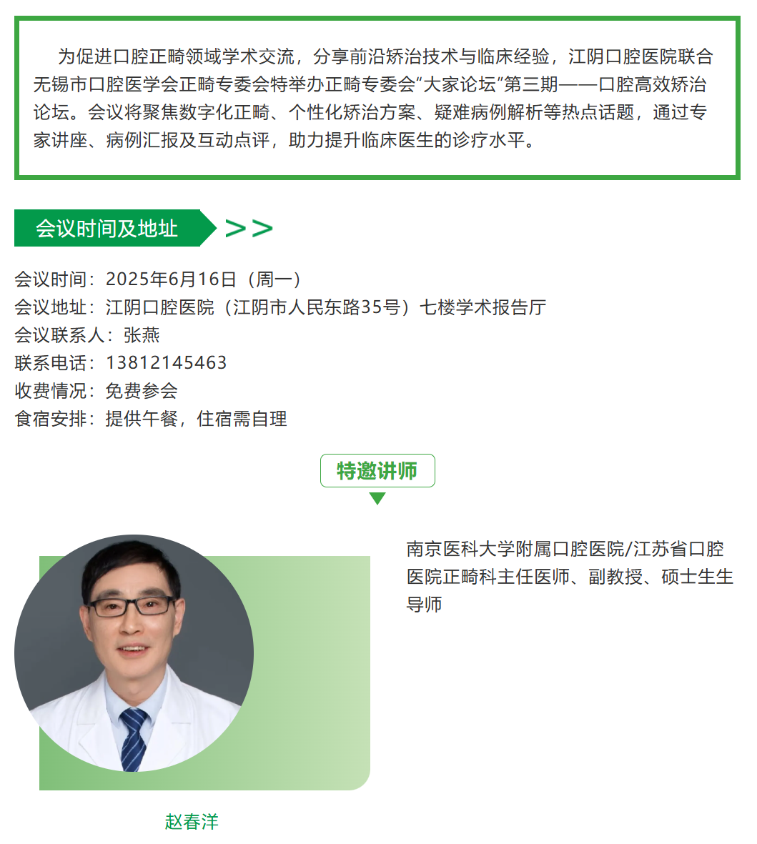 【大家论坛】6月16日,江阴口腔医院举办口腔高效矫治论坛诚邀您参加