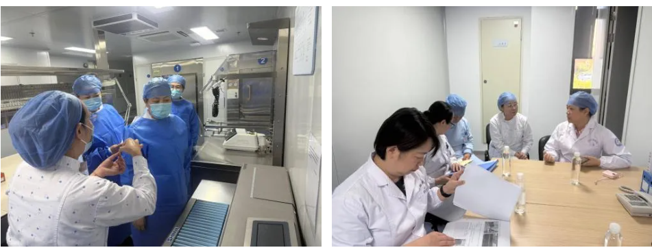 专家组深入科室检查无菌物品的存放与器械的预处理情况,全面跟踪复用器械从回收、清洗、消毒到包装、灭菌、储存、发放的全流程执行情况,重点核查人员资质、岗位培训、设备管理、清洗灭菌监测、流程规范与持续质量改进等关键内容,确保各环节严格符合标准。